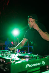 Con le cuffie spesso in mano e poi all’orecchio, DJ Sanco mixa con delicatezza e armonia…